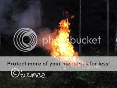 Sade antoi kuitenkin mahdollisuuden erääseen tärkeään tehtävään, jota muutoin ei yli 30 asteen helteillä olisi voinut suorittaakaan. Nimittäin roskien polttamiseen. Tällä kertaa risujen ja muun roinan kanssa paloi iloisesti myös vanha loppuunkulunut sohva, joka keittiössä oli tallella.