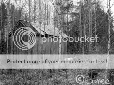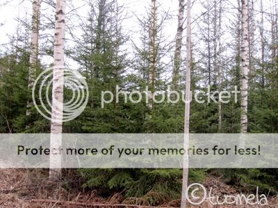 Ympäristökierroksen satoa: Tontilla kasvaa mm. koivuja, kuusia, mäntyjä ja haapoja. Yksi vanha tuomi on nurkalta lahonnut. Harmi, sillä se oli koko mökin symboli, kuten nimikin varmasti jo kertoo.